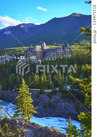 Banff Springs Castle Hotel River and Mountain View from Surprise Corner Canada