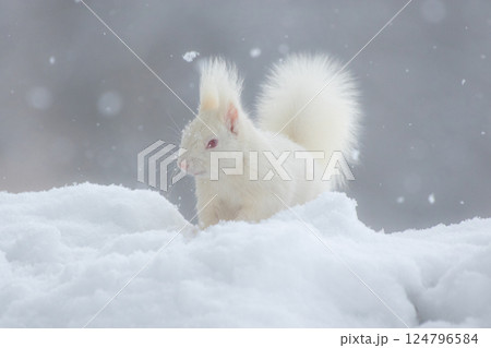 真冬の北海道に生きる、珍しいアルビノのエゾリス