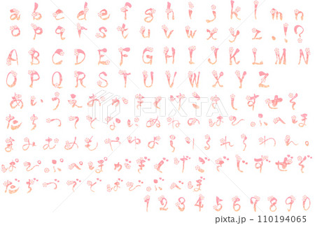 桜模様の春の和風花文字(アルファベット、ひらがな、数字)