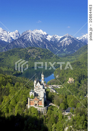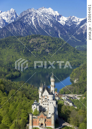 ノイシュバンシュタイン城から眺めるアルプ湖とホーエンシュバンガウ城