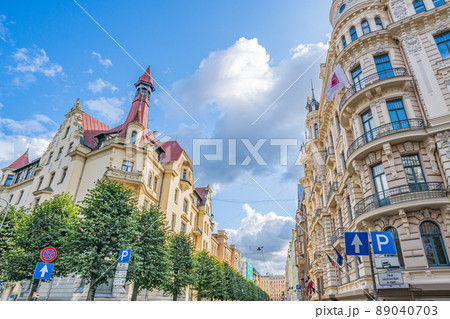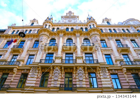 ラトビア、リガ旧市街のユーゲントシュティール(アールヌーヴォー)様式の建築物