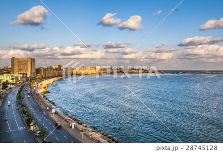 Skyline of Alexandria and the Mediterranean seacoast of Egypt