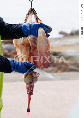 あんこうの吊るし切りのあん肝(青森県風間浦村)