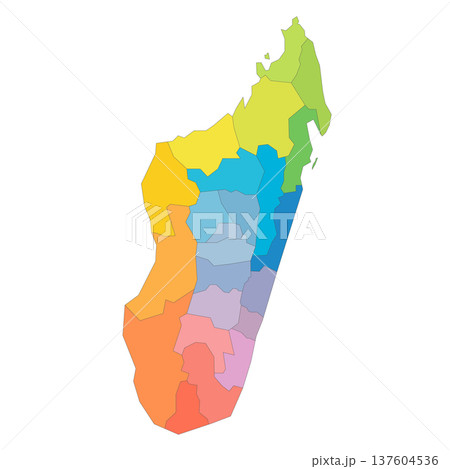 Madagascar political map of administrative divisions - regions. Rainbow spectrum colorful blank vector map.