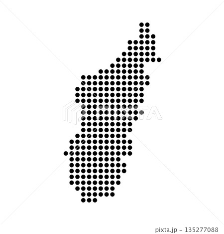 Madagascar country dotted map. Black spot pixel illustration isolated on white background. Vector circle mosaic.