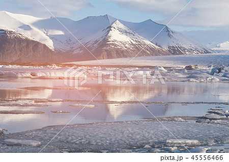Jokulsarlon lagoon with mountain background