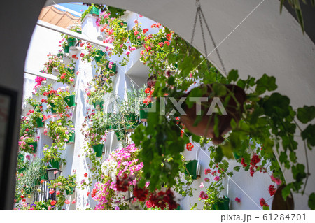コルドバのパティオ祭りの壁一面の鉢植え la fiesta de los patios