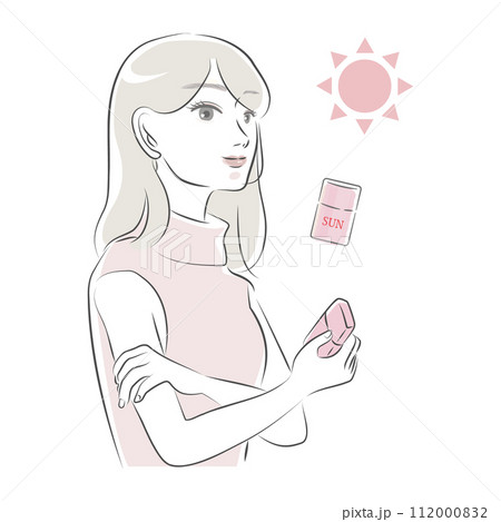 日焼け止めを塗る女性のイラストセット(ピンク)