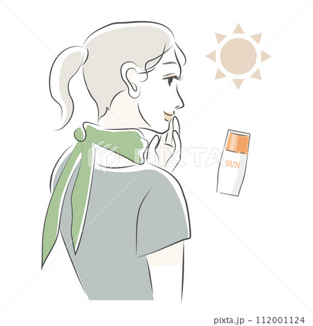 日焼け止めを塗る女性のイラストセット(グリーン)