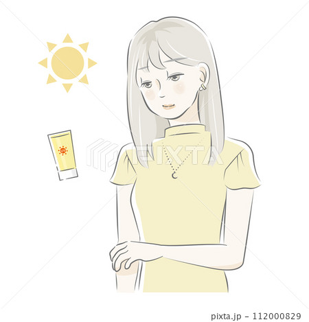 日焼け止めを塗る女性のイラストセット(イエロー)