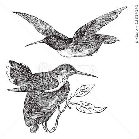Small Bright Colorful Hummingbirds Flying And Sitting Vector Illustration Set