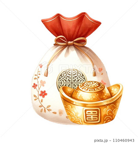 Chinese New Year red bag with gold money clipart watercolor .AI Generate