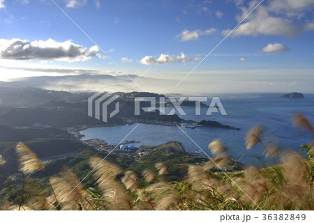 新北市,瑞芳區,台北,基隆山,山,建築物,藍天,雲,芒花,花