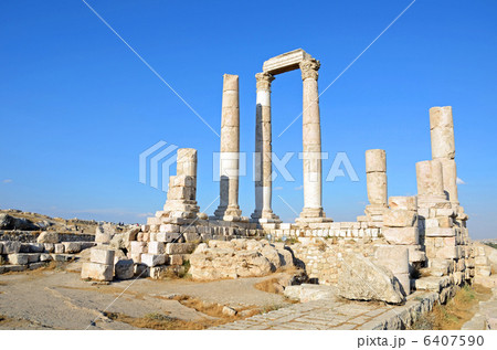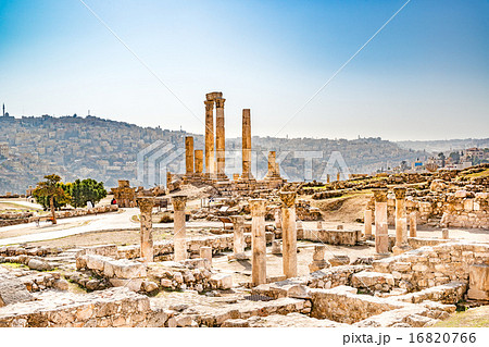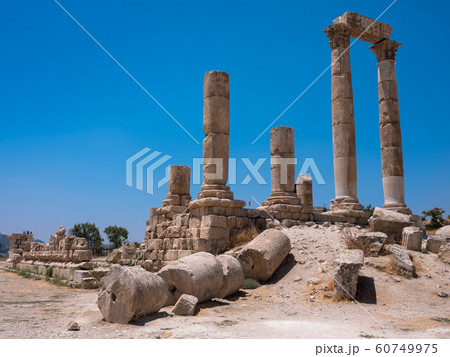Ruins of Roman Temple of Hercules at the Amman Citadel . Jordan.