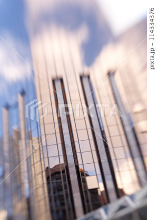 Close up of modern glass facade reflecting blue sky in Frankfurt