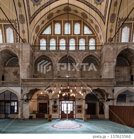 Muradiye Mosque interior with ornate Ottoman architecture, Manisa, Turkey