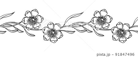 seamless floral pattern decorative border, hand drawn doodle vector for invitations, posters, postcards in art nouveau style.