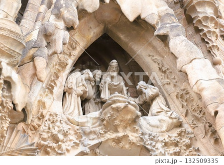 サグラダ・ファミリア「生誕のファザード」の「愛徳の門」を飾る「羊飼い達の礼拝」の彫刻