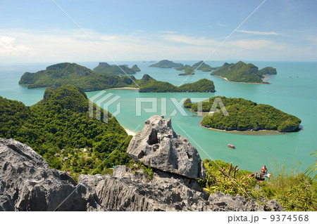 Ang Thong National Marine Park panoramic view of tropical islands and turquoise sea seen from high viewpoint in Thailand