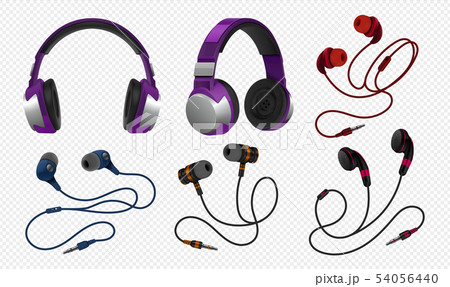 Realistic headset. Wireless gaming earphones with mic and and corded studio monitor headphones for