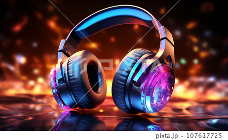 Modern wireless headphones with high fidelity glowing earbuds for gamers and teens. Ai-generated
