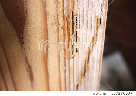 白蟻の被害にあった住宅の柱の断面 シロアリ調査イメージ