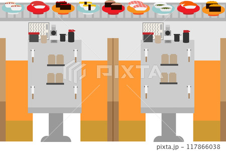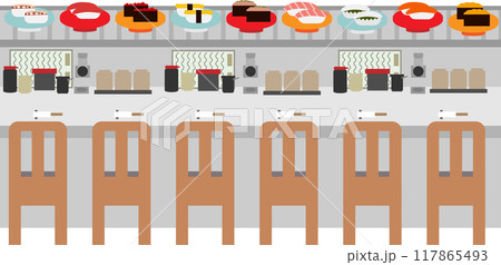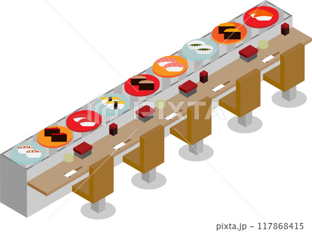 アイソメトリックな回転寿司のカウンター席のイメージ素材