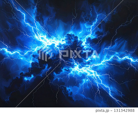黒背景に炸裂する青い稲妻の衝撃的なイラスト