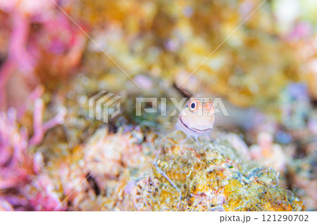 素晴らしいサンゴ礁の可愛いイシガキカエルウオ(イソギンポ科)他@嘉比島 沖縄県島尻郡座間味村座間味