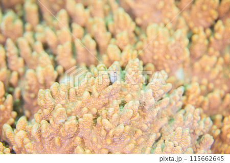 美しいサンゴと可愛いミノカエルウオ(イソギンポ科)の幼魚他。伊豆半島南伊豆町中木ヒリゾ浜-2023