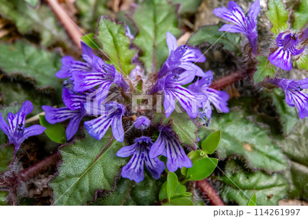 地獄の釜の蓋とも呼ばれることもある紫の花と付けるキランソウ