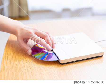 PC ディスクを挿入、取り出す女性 コピースペース 16:9