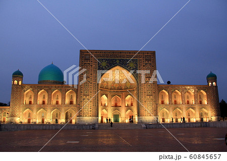 サマルカンドのレギスタン広場の夜景