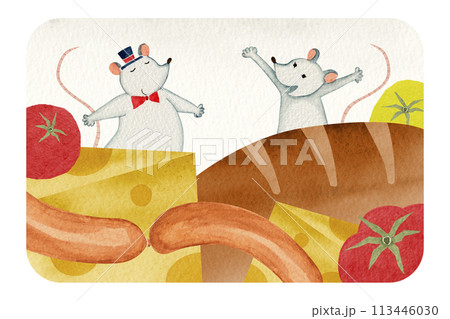 イソップ寓話 町のねずみと田舎のねずみ 水彩 イラスト