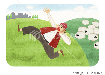 イソップ寓話 オオカミ少年 水彩 イラスト