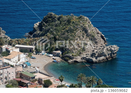 Panoramic view of Isola Bella small island near Taormina, Sicily, Italy