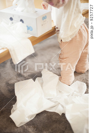 赤ちゃん いたずら (ベビー 幼児 女の子 1才 1歳 ティッシュ ちり紙 鼻紙 フローリング 床)