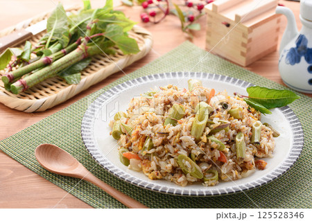 春だけの贅沢 イタドリごはん (イタドリとジャコの混ぜご飯)