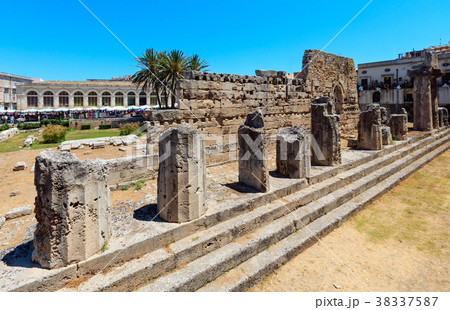 Panoramic view of Teatro Greco, Greek amphitheater in Siracusa, spring sunny day