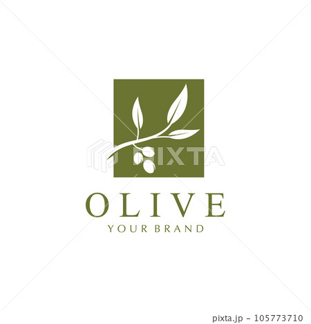 Olive trees set with branches and leaves for design of packaging, label, logotype or banner. Natural organic stylized olive icon, premium quality sign. Vector illustration