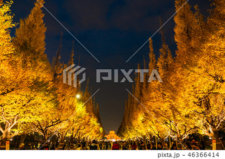 《東京都》イチョウ並木のライトアップ・神宮外苑