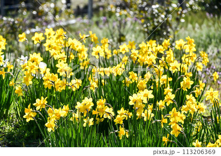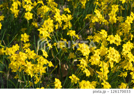 日本の春の公園に咲くキズイセン(黄水仙)の花