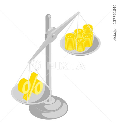 Isometric Bank interest outweighs amount of the initial payment on loan. Isolated cartoon vector on white background top view