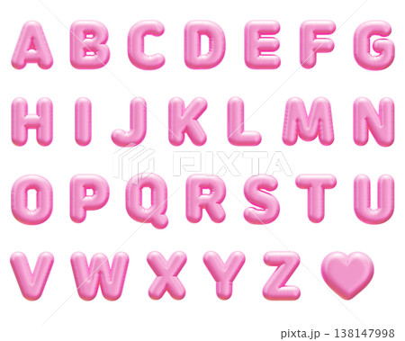 Pink 3D Balloon Alphabet Letters A to Z with Heart Icon set