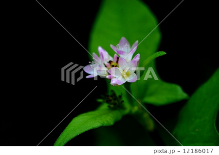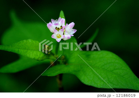 自然 植物 ニオイタデ、開花した花。花被は五裂し内側の色はきれいな薄いピンク色