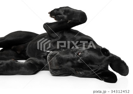 Great Dane lying down and playing