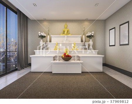 modern buddha prayer room with night view