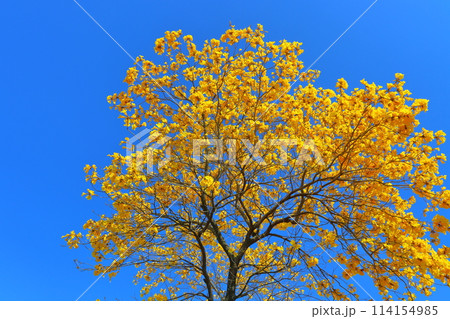 サンパウロ市内で満開に咲くブラジル国花のイペーと青空