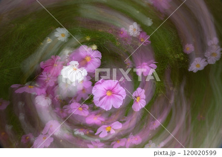 スローシャッターによるコスモスの花のデザイン的表現素材