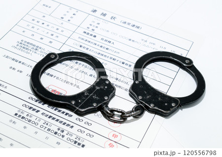 闇バイトで逮捕イメージ(逮捕状と手錠)